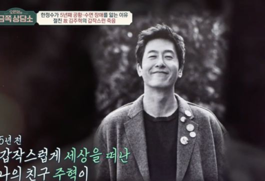 [OSEN=김수형 기자] '금쪽상담소'에서 한정수가 유일하게 가족같이 지냈던 고 김주혁의 비보 후 여전히 아픔과 슬픔으로 살아간 지난 날을 고백, 이번 기회를 통해 새 출발을 할 수 있도록 스스로도 마음을 다졌다. 특히 풀리지 않은 미스터리한 고 김주혁의 사고원인도 여전히 궁금증을 안기고 있다.