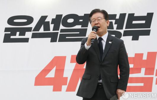 [서울=뉴스핌] 정일구 기자 = 이재명 더불어민주당 대표가 25일 오후 서울 중구 서울광장 인근에서 열린 '대일 굴욕외교 규탄 4차 범국민대회'에서 발언을 하고 있다. 2023.03.25 mironj19@newspim.com