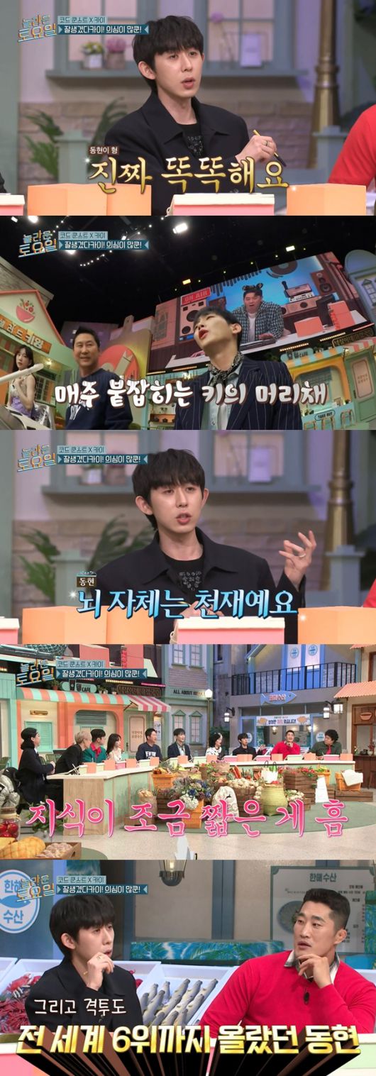 코쿤은 "여기 동컴과 키컴 배틀이 있다고 하더라. 형이랑 퀴즈를 같이 풀어본 사람으로써 뇌 자체는 천재다. 지식이 조금 짧은데 뇌 자체는 너무 우수하다"라고 김동현을 칭찬했다.