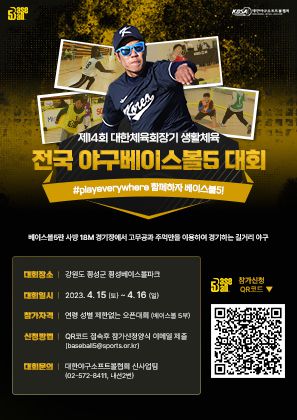대한야구소프트볼협회(KBSA, 이하 '협회')는 공지를 통하여 '제4회 대한체육회장기 전국 베이스볼5 대회'가 열린다고 발표했다. 내달 15일부터 16일까지 이틀간 강원 횡성 베이스볼파크에서 진행된다.