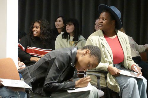 (요하네스버그=연합뉴스) 유현민 특파원 = 남아프리카공화국 프리토리아의 주남아공한국문화원에서 25일(현지시간) 열린 '한국 문화의 밤' 행사에서 미타테코 마푸예카(오른쪽) 변호사가 퀴즈를 풀고 있다. 2023.3.26