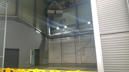 화재 발생에 대비한 배터리 낙하시험현장의 가변식 대형 후드 [사진=김종성 기자] |