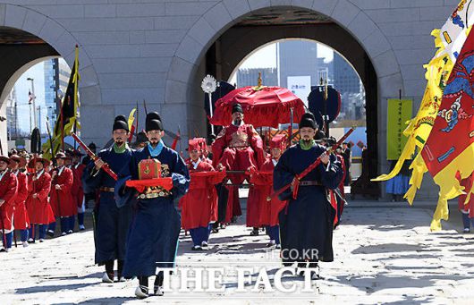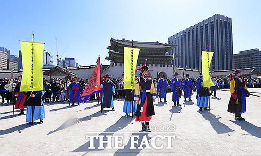 올해 전국 수문장 임명의식에는 경복궁 수문장을 포함해 창덕궁, 덕수궁, 인천국제공항, 제주목, 진주성, 강릉 대도호부 등 전국을 대표하는 7곳 수문장이 경복궁에 모여 국왕의 임명을 받았다.