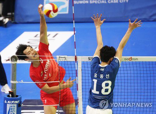 (수원=연합뉴스) 홍기원 기자 = 26일 경기도 수원실내체육관에서 열린 프로배구 V리그 남자부 플레이오프 2차전 한국전력 빅스톰과 현대캐피탈 스카이워커스의 경기. 한국전력 서재덕이 공격하고 있다. 2023.3.26 xanadu@yna.co.kr ▶제보는 카카오톡 okjebo▶연합뉴스 앱 지금 바로 다운받기~▶네이버 연합뉴스 채널 구독하기 <저작권자(c)연합뉴스. 무단전재-재배포금지.>