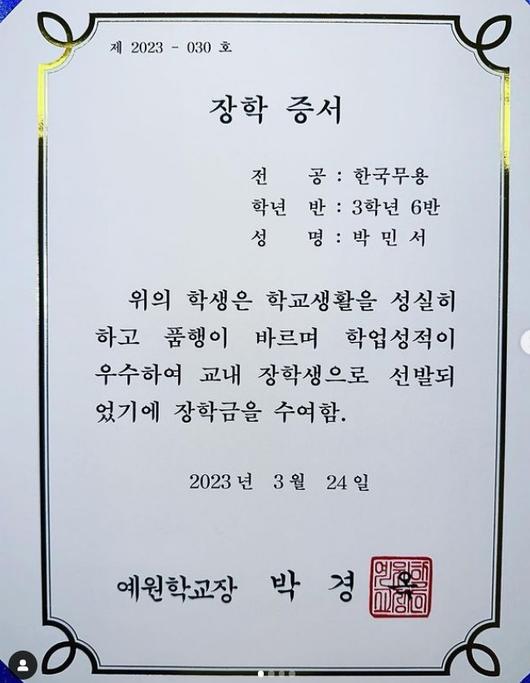 누리꾼들 또한 “민서최고”“입학 때부터 모든 학기 예원 장학금 쓸어가는 우수헉생””“민서야 응원해”라며 칭찬을 아끼지 않았다.