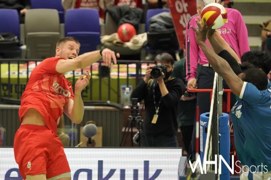 26일 수원 수원실내체육관에서 열린 '도드람 22-23 V리그' 플레이오프 2차전 한국전력 VS 현대캐피탈 경기가 열린 가운데, 한국전력이 3-2(25-18, 21-25, 25-18, 25-27,18-16)으로 현대캐피탈을 꺾고 3차전 천안에서 대결이 펼쳐질 예정이다. 5세트 타이스가 공격을 시도하고 있다. <저작권자 Copyright ⓒ MHN스포츠 무단전재 및 재배포 금지>