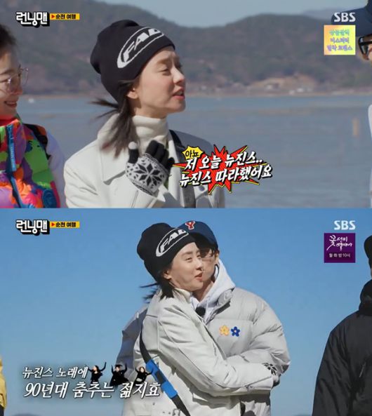 이에 송지효는 "뉴진스 따라 했다"며 즉석에서 깜짝 춤을 선보였다.