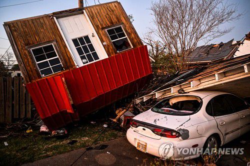미시시피주 강타한 토네이도에 뒤집혀버린 집 |