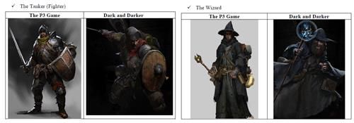넥슨은 그 근거로 '프로젝트 P3'의 저작권 등록 정보, '다크 앤 다커' 애셋 파일 이름과 일러스트를 P3와 비교한 자료도 함께 첨부했다.