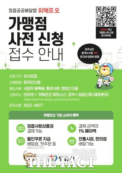 [더팩트 | 정읍=곽시형 기자] 전북 정읍시가 민선 8기 공약사업인 정읍형 공공 배달앱 사업을 본격 추진한다.