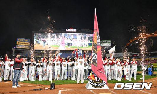 먼저 구단 공식 어플리케이션 내 룰렛 이벤트에 참여한 팬 중 총 4명(1,2차전 각 2명)에게 22시즌 한국시리즈 승리 경기(2,3,5,6차전)의 스타팅 라인업과 데일리 MVP 친필사인이 담긴 ‘통합 우승 기념 액자’를 제공한다.