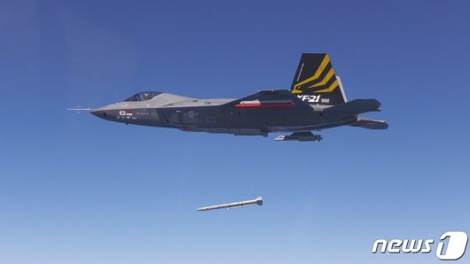 방위사업청은 이날 "KF-21이 오늘 경남 사천 공군 제3훈련비행단을 이륙, 남해 상공에서 진행한 공대공 무장분리 시험, 공중 기총발사 시험을 성공적으로 수행했다"고 밝혔다.