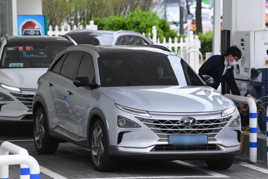 현대차 수소전기차 넥쏘가 수소를 충전하고 있다. 전자신문 DB |