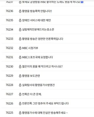 그러나 이를 받아들이지 못한 황영웅 팬들은 MBN 사옥 앞에서 '황영웅 인권 사수, 기자들은 마녀사냥 중단하라, 가짜 뉴스에 엄마들 뿔났다'며 현수막을 내걸고 시위를 벌이기도 했다.