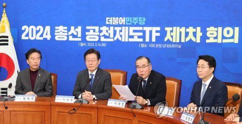 당 총선 공천제도 TF(태스크포스)는 지난 23일 회의를 열고 총선 후보자 선출 규정을 논의했다.