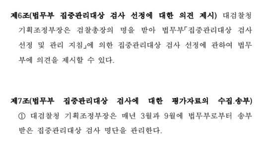 법무부는 ‘집중관리대상 검사’ 제도는 명확한 지침에 기반하여 근무평정, 징계, 비위전력 등 객관적인 자료를 기초로 검사의 복무기강을 확립하기 위해 실시되었던 제도로, 정치적 이념이나 사상 등 자의적인 기준으로 특정인에게 불이익을 가할 목적으로 작성된 소위 문체부 등 블랙리스트와는 그 성격이 다르다'고 답했다. 또 ‘법원(1심)에서도 집중관리대상 검사 선정 및 관리지침과 제도의 목적의 정당성은 인정했고, 법무부는 향후 항소심에서 위 지침과 제도의 적법성에 대해 충분히 설명할 예정'이라고 했다.
