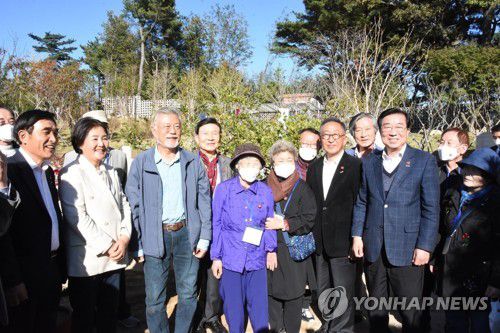 문재인 전 대통령 내외가 지난해 10월 19일 경남 양산시 하북면 평산마을 사저를 찾은 제주 4·3 유족회와 대화하는 모습. [문재인 전 대통령 페이스북 캡처. 재판매 및 DB 금지] |