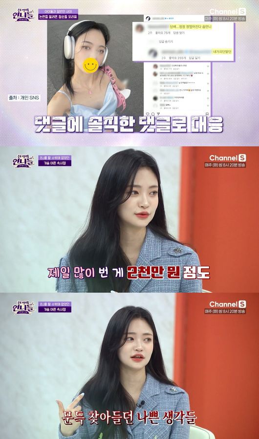 29일 방송된 채널S ‘진격의 언니들’에는 다이아 출신 BJ 안솜이가 출연해 고민을 털어놨다.
