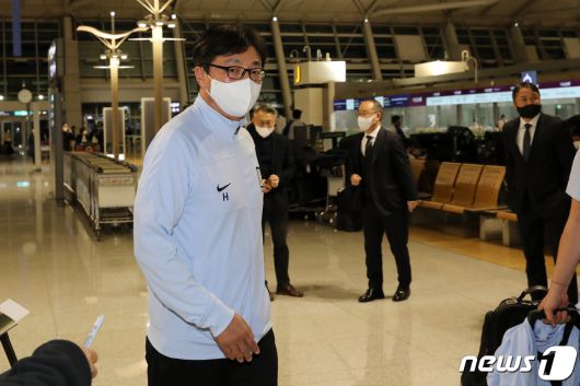 황선홍 올림픽 축구대표팀 감독이 아랍에미리트와의 평가전을 위해 13일 오후 인천국제공항을 통해 아랍에미리트(UAE)로 출국하고 있다. 2022.11.13/뉴스1 ⓒ News1 이승배 기자 |