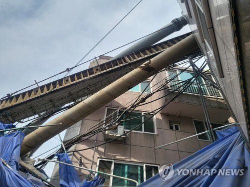 37m 길이인 이 항타기가 넘어지면서 인근 4층짜리 건물 등 원룸 3곳을 덮쳤다.