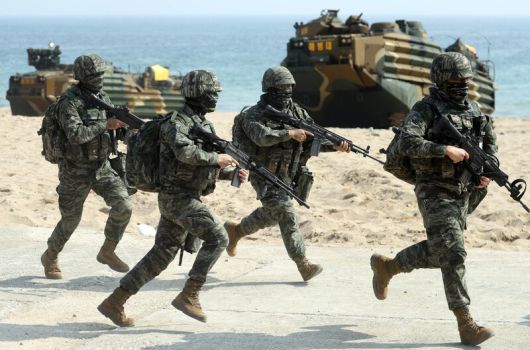 29일 오전 경북 포항에서 한미 해군·해병대 장병들이 상륙훈련을 하고 있다. 포항/연합뉴스 |