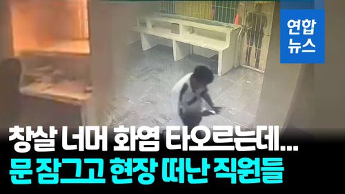 현지 지역 매체에서 확보한 폐쇄회로(CC)TV 녹화 영상에는 이민청 직원 2명이 쇠창살 넘어 화염을 뒤로한 채 어디론가 이동하는 모습이 담겼는데요. 내부에서 출입문을 발로 걷어차는 이민자도 보입니다.