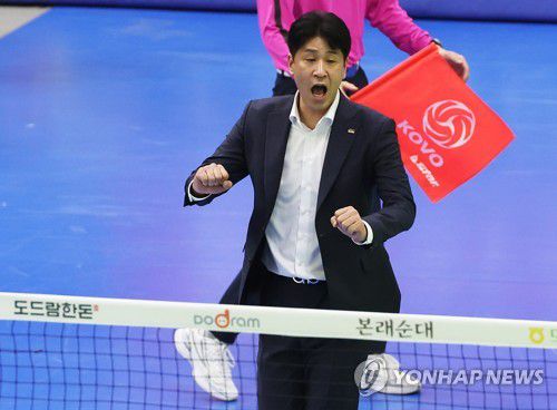 기뻐하는 김종민 감독 |