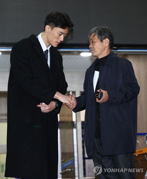 (서울=연합뉴스) 김인철 기자 = 마약 투약 혐의 관련 조사를 마치고 석방된 전두환 전 대통령의 손자 전우원 씨가 29일 오후 서울 마포경찰서에서 전태일 열사의 동생 전태삼 씨와 대화를 나눈 뒤 인사하고 있다. 2023.3.29