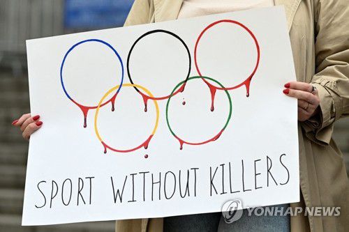 러·벨라루스 올림픽 참가 반대시위 벌이는 우크라 활동가 |