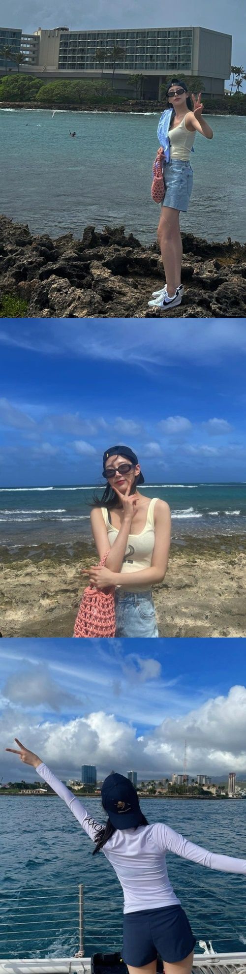 공개된 사진 속 정예인은 바닷가를 배경으로 포즈를 취하고 있다.