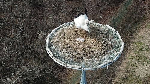 서산버드랜드 둥지 탑에서 자연번식에 성공한 황새와 새끼들 |