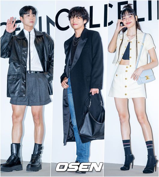 [OSEN=민경훈 기자] 30일 저녁 서울 영등포구 여의도 더현대 서울에서 방탄소년단(BTS) 뷔, 블랙핑크(BLACKPINK) 리사, 배우 박보검의 파리 럭셔리 브랜드 포토콜 행사가 열렸다. 배우 박보검, 방탄소년단 뷔, 블랙핑크 리사가 입장하며 포즈를 취하고 있다. 2023.03.30 / rumi@osen.co.kr