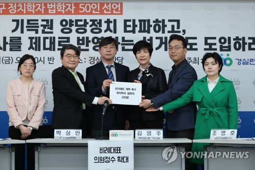 이들은 선언문에서 "기득권 양당의 구도를 깨고 유권자 의사를 제대로 반영해 새로운 정치세력이 진출할 기회를 주는 것이 개혁의 핵심"이라며 "1등만 뽑는 선거에서는 사표를 방지하려는 유권자의 전략 투표가 양당체제를 심화할 수밖에 없다"고 주장했다.