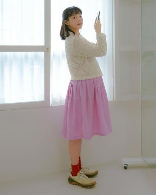 공개된 사진에는 핑크 스커트에 하얀색 가디건을 입은 윤승아의 모습이 담겼다. 뚜렷한 D라인 눈길을 끈다.