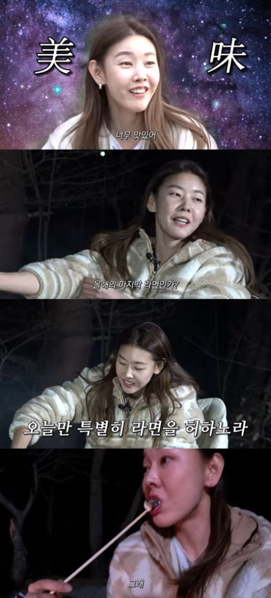 이어 라면이 완성됐다. 한혜진은 "먹어보자. 올해의 마지막 라면인가"라면서 "일년에 라면 두 번 먹는다"고 말해 리랑온에어를 깜짝 놀라게 했다. 이어 한혜진은 "라면에게 쉽게 내 위장을 내주는 여자가 아니다"라고 덧붙여 평소 관리 일상을 엿보게 했다.