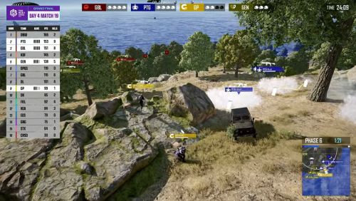 다나와는 지엔엘과 디플러스 기아의 견제를 받고 2킬 포인트로 마무리됐다. 페이즈5 상위권에 이름 올린 기블리와 펜타그램의 눈치싸움이 길어졌다.