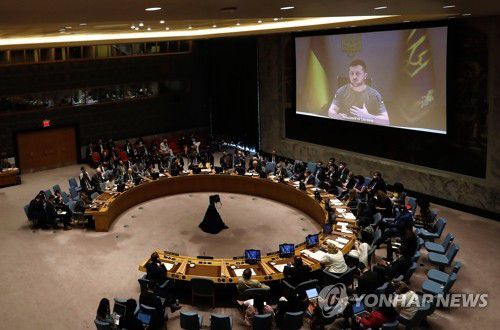 작년 8월 안보리 화상연설하는 젤렌스키 우크라 대통령 |