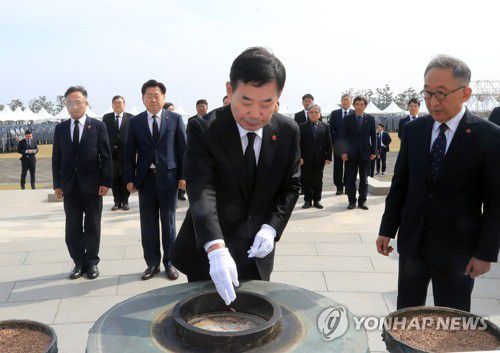 (제주=연합뉴스) 백나용 기자 = 김진표 국회의장이 1일 오전 제주시 봉개동 4·3평화공원을 찾아 참배하고 있다. 2023.4.1 dragon.me@yna.co.kr ▶제보는 카카오톡 okjebo▶연합뉴스 앱 지금 바로 다운받기~▶네이버 연합뉴스 채널 구독하기 <저작권자(c)연합뉴스. 무단전재-재배포금지.>