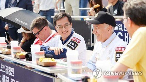 (수원=연합뉴스) 김동연 경기도지사는 1일 필립 골드버그 주한 미국대사와 수원 KT위즈파크에서 열린 2023 KBO(한국야구위원회)리그 개막전 KT위즈와 LG트윈스의 경기를 관람했다. 동반 관람은 지난해 11월 30일 골드버그 대사의 경기도청 방문 당시 열렬한 야구팬인 김 지사의 제안으로 성사됐다. 2023.04.01 [김동연 지사 페이스북 캡처. 재판매 및 DB금지]