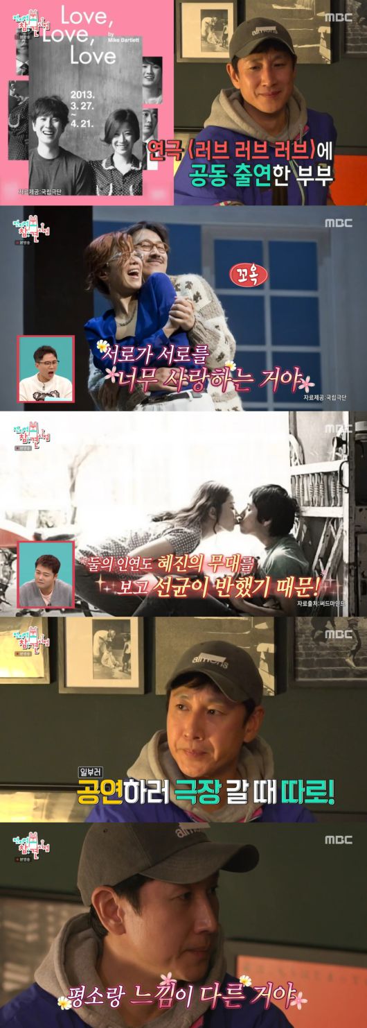 이선균은 연극할 당시 일부러 극장에 따로 갔다고. 그는 "생활 방식이 혜진이는 육아 때문에 활동을 못 하고 있었고, 나도 무대를 10년 만에 하는 거였다"며 "각자 출발하고 극장에서 만났는데 연애할 때 기분이 들더라"고 말해 놀라움을 안겼다.