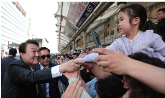 윤석열 대통령이 보수의 심장으로 불리는 대구 서문시장을 찾아 지지층 결집에 나섰다. 취임 1주년을 앞두고, 나아가 2024년 치러질 총선까지 1년여를 남긴 상황에서 국정동력을 확보하기 위한 움직임으로 보인다.