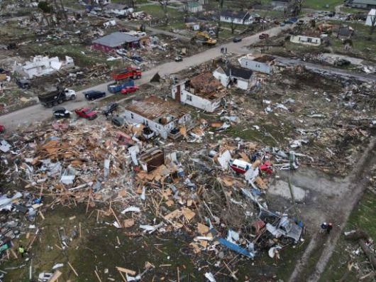 1일(현지시간) AP통신 등 주요 외신에 따르면 전날 오후 늦게 테네시와 아칸소, 일리노이, 인디애나주(州) 등 최소 8개 주에서 토네이도가 발생했다. 미 국립기상청(NWS)은 이번 토네이도의 최고 풍속이 시속 265㎞에 달했다고 설명했다.