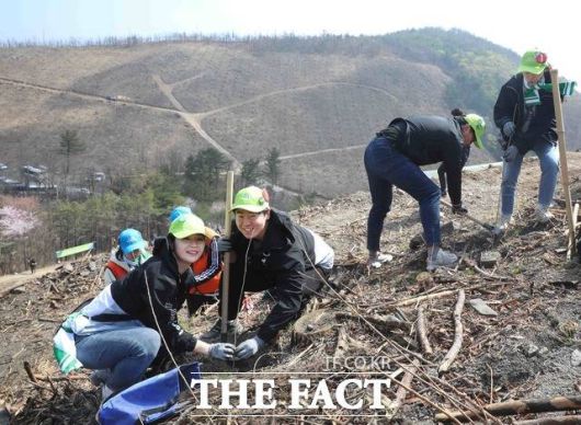 이번 식목행사에는 자원봉사자와 유한킴벌리 임직원, 사회 지도자 등 300여 명이 참석했다.