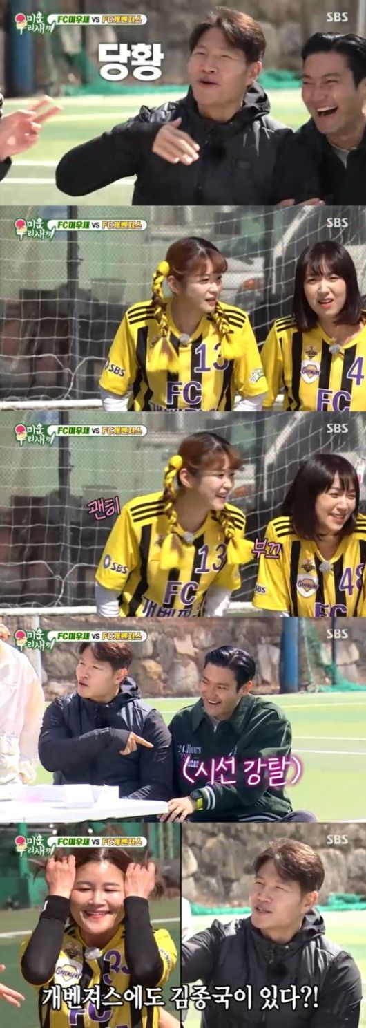이날 방송에서 김종국, 탁재훈, 허경환, 최시원, 딘딘, 강재준은 FC개벤져스를 만나기 위해 풋살장으로 갔다. 이어 풋살장에 김민경, 오나미, 이은형, 김혜선, 김승혜도 등장했다.