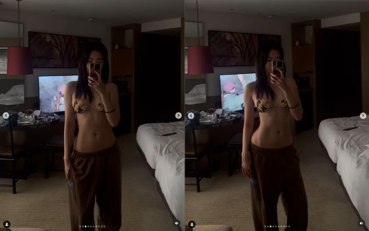 이어진 사진에서는 수영복 차림으로 수영장에서 수영을 즐기다가 셀카를 찍은 모습이 담겼는데, 해당 사진에서는 수영복의 색상 탓에 유두가 약간 도드라져 보였다.