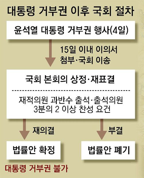 재의결은 출석 3분의2 찬성 필요, 野 의석으론 본회의 통과 어려워