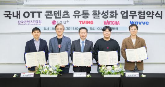 [서울=뉴스핌] 이지은 기자 = 한국콘텐츠진흥원(원장 조현래)은 국내 대표 OTT 플랫폼 운영 4개사와 국내 OTT 콘텐츠 유통 활성화를 위해 업무협약을 지난 4일 서울 광화문 CKL기업지원센터에서 체결했다.