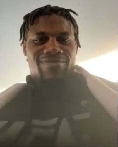 UFC 미들급 파이터 케빈 홀랜드가 5일 세계일보와의 화상 인터뷰를 진행하며 웃고 있다. |
