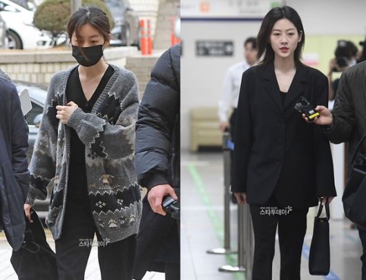 김새론은 이날 법정 패션의 모범이라 불리는 올 블랙룩으로 등장했다. 재킷에 바지, 가방, 구두까지 블랙으로 통일했다. 넉넉한 재킷과 헐렁한 바지 탓에 그새 더 마른 모습이 부각됐다. 가방 역시 깔끔한 블랙 토트백을 들었다. 마스크를 쓰지 않은 입술엔 연한 핑크 립스틱을 발랐다.