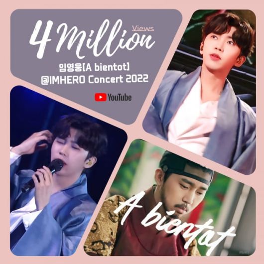 임영웅이 지난해 10월 19일 공식 유튜브 채널을 통해 공개한 '임영웅 [A bientot] @ IM HERO concert 2022' 영상은 4월 5일 조회수 400만 뷰를 넘어섰다.